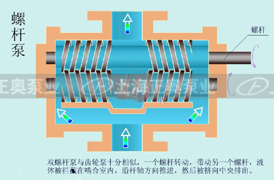 正奧雙螺桿泵的種類較多,它們是由不同的螺桿螺旋形面(即螺旋齒形曲線也稱型線)構成不同類型的雙螺桿泵。雙螺桿泵有密封型和非密封型兩大類。   雙螺桿泵作為一種容積式泵,泵內吸入室應與排出室嚴密地隔開。因此,泵體與螺桿外圓表面及螺桿與螺桿間隙應盡可能小些。同時螺桿與泵體、螺桿與螺桿間又相互形成密封腔,保證密閉,否則就可能有液體從間隙中倒流回去。