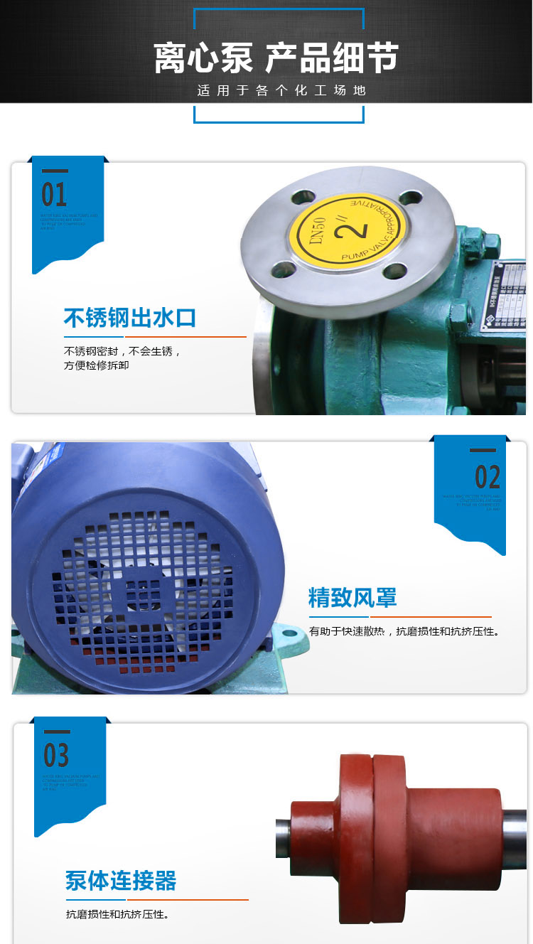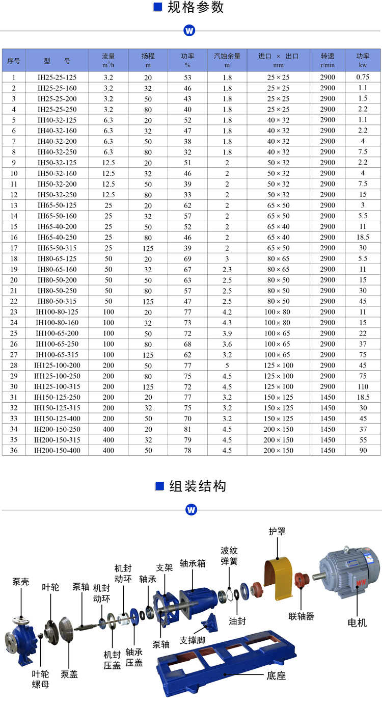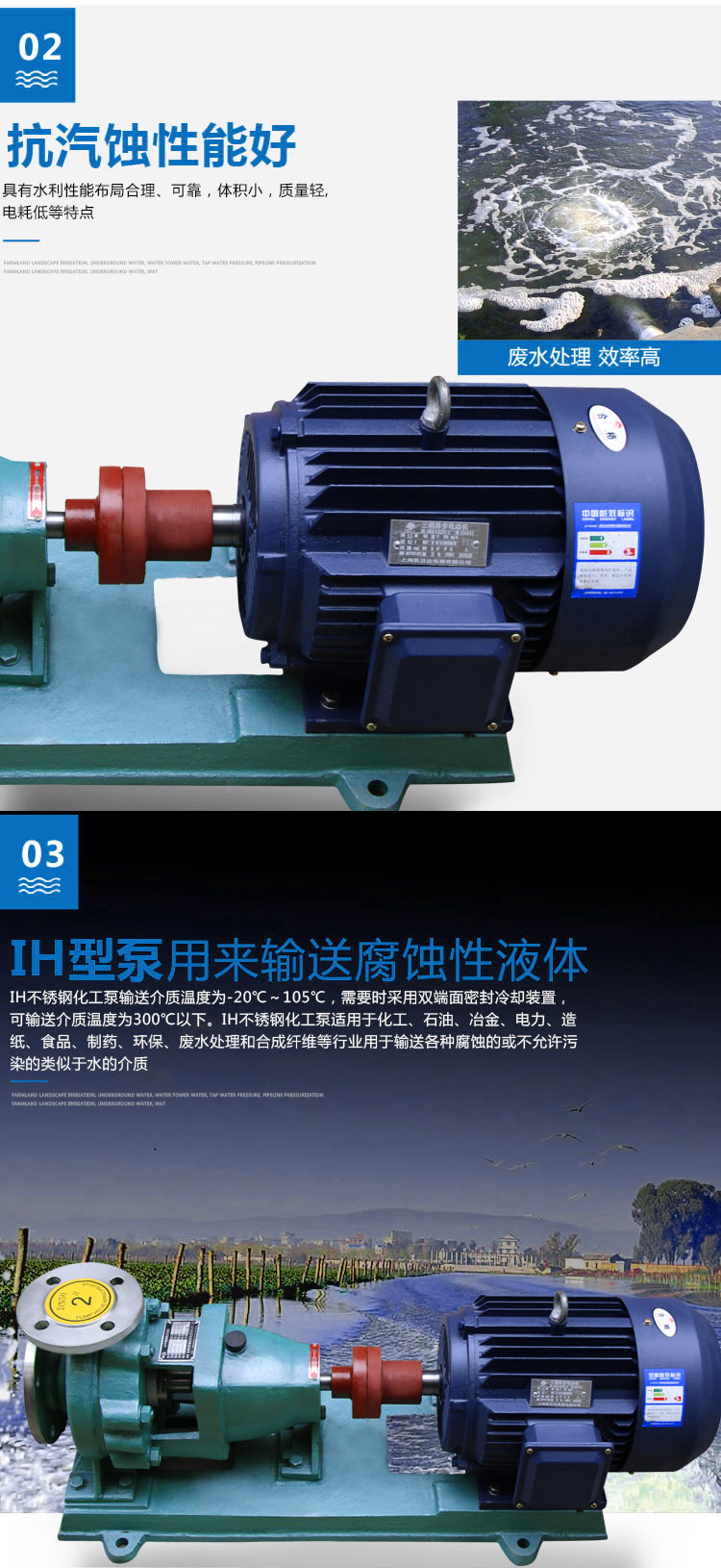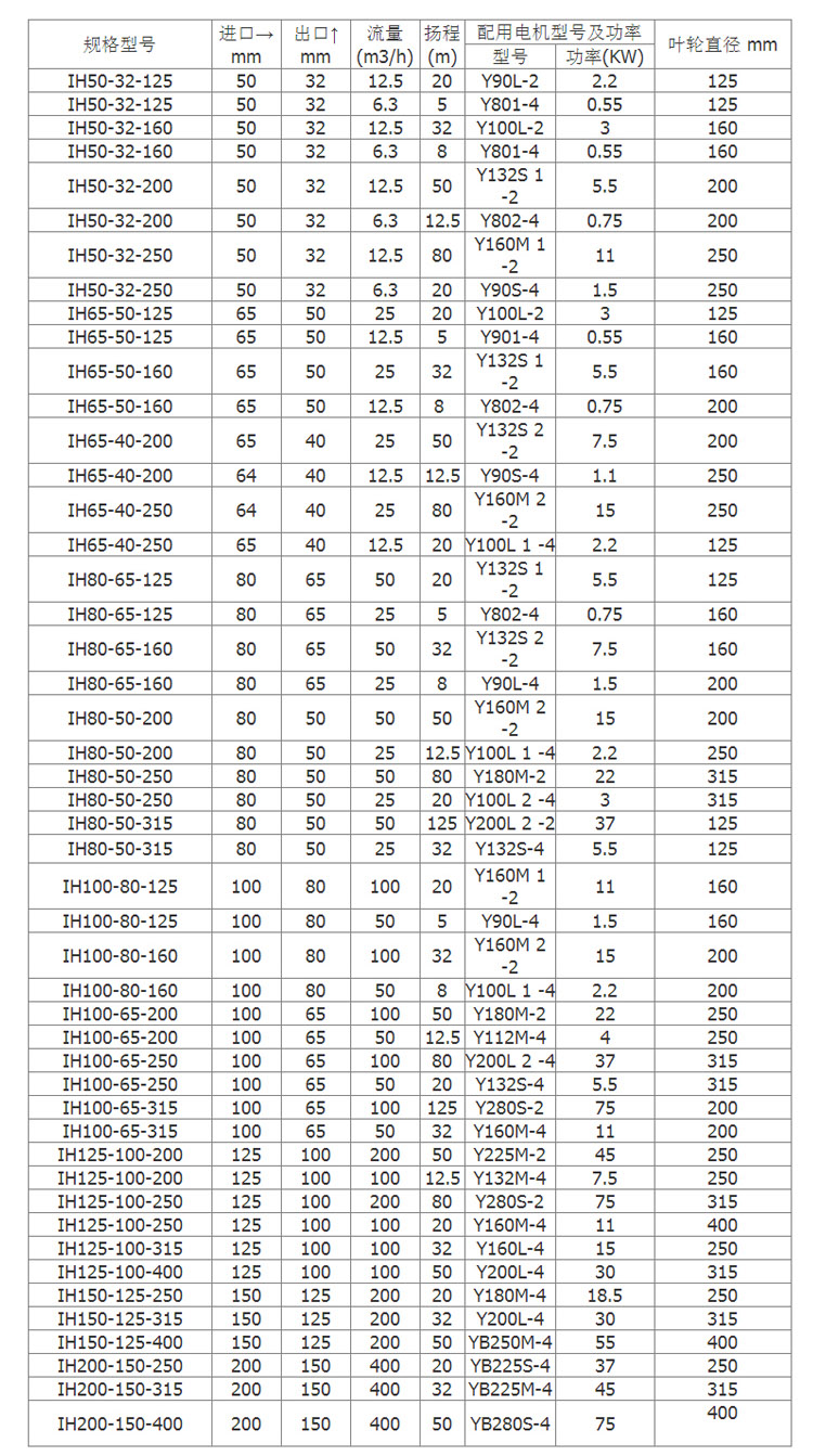 IH型化工泵是單級單吸懸臂式離心泵,其標記額定性能點和尺寸等效采用國際標準ISO2858-1975(E),是一種用以取代F型耐腐蝕泵更新換代的產品,適用于化工、石油、冶金、電站、食品、制藥、合成纖維等部門輸送溫度在-20℃~105℃的腐蝕性介質或物理、化學性能類似于水的介質。