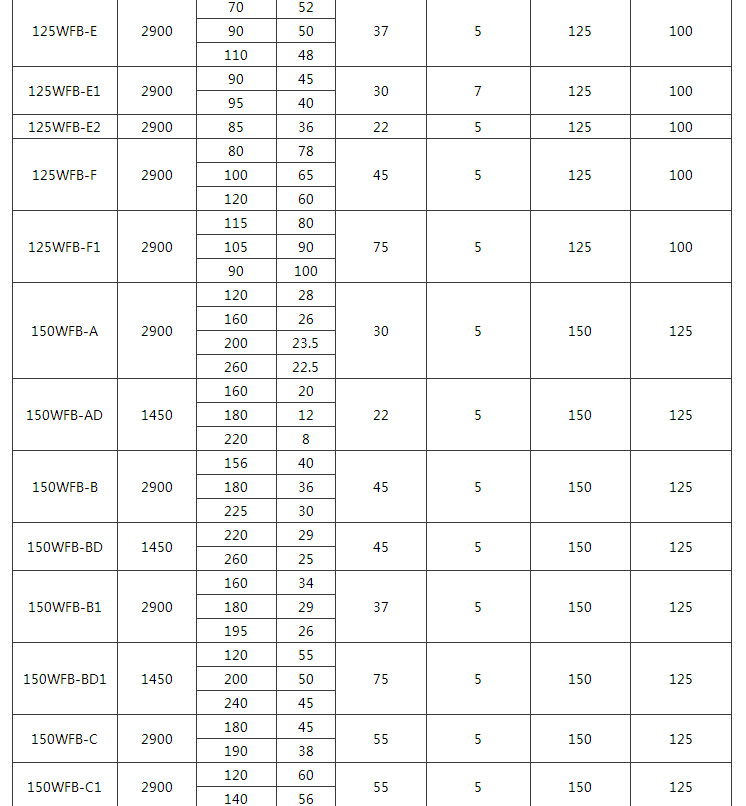3、假設水泵的要求是:造型為長方形防爆型,其它要求同上,這臺水泵的完整型號為"1.3BXG40WFB-A4-2"。