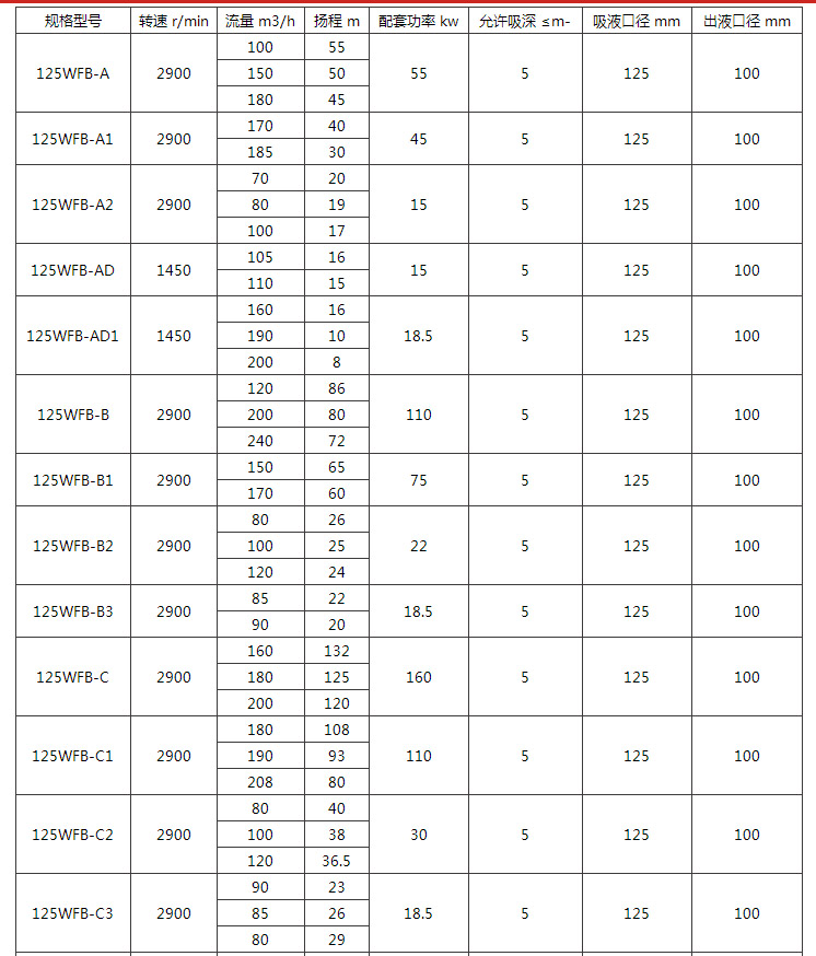 2、完整的型號書寫方式。假設水泵的要求是:造型為推車移動型,材質為不銹鋼,吸液口徑為40mm,性能分類為A4。這臺水泵的完整型號為"5BXG40WFB-A4-2"。