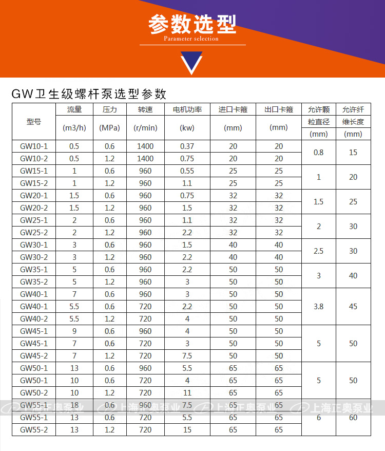 五、衛生級螺桿泵技術參數:
