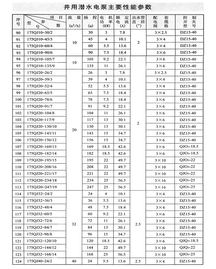 | 85 | 175QJ40-120/10 | 120 | 22 | |||||