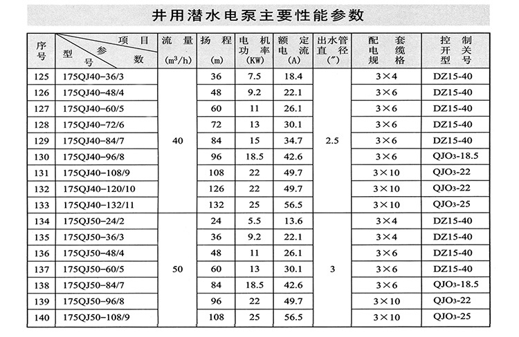 | 86 | 175QJ40-132/11 | 132 | 25 | |||||
