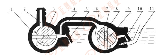如被抽除的氣體中含有較高的蒸汽氣體時(shí),在氣體受到壓縮而其蒸汽的分壓強(qiáng)超過(guò)此蒸汽在泵內(nèi)溫度下的飽和壓強(qiáng)時(shí),此時(shí)蒸氣被壓縮成為液體,真空泵無(wú)法排出,而混在真空油內(nèi),使泵的性能大大降低。如果摻入適量的空氣,使蒸汽在受到壓縮時(shí),其分壓強(qiáng)也低于泵溫的飽和壓強(qiáng),則蒸汽在變成液體前就能被排出泵外去,故本系列2x-4以上的泵都裝有能放入一定量氣體的摻氣閥11見(jiàn)圖1