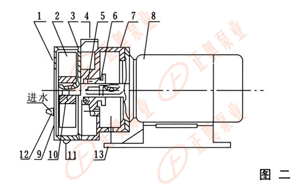 填料裝在泵體內,密封水經泵體上的針孔流入填料中,葉輪形成水環所需的補充水經由泵體上的彎頭供給,它可與自來水或汽水分離器聯在一起,供給循環水。