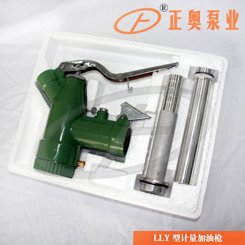 正奧LLY-25型、LLY-32型系列計量加油槍是水平螺翼式流量表與加油槍的組合。是用于測量流經管道液體(汽油、柴油、機油、液壓油等)的體積流量的儀表。適用于汽油等輕質油料的灌裝。該產品按Q/YOY01-90標準組織生產,具有精度高,使用方便、靈活等優點。適用于公路工程施工、廠礦企業、機關團體的油料管理。BSLJ型計量加油槍,它可以直接安裝在油庫的灌桶的分發管上加油和灌油。也可以安裝在汽車油槽車和汽油摩托泵的分發管上給群車加油。油料可以由泵供給,也可以利用油罐高差的自然壓力(壓力應在≤0.4兆帕)。它具有體積小,重量輕,攜帶方便,計量準確等優點,適用于輕質油料的灌裝。