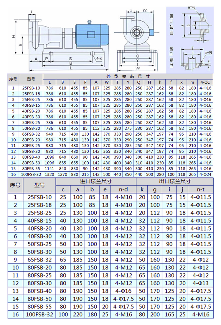FSB型氟塑料合金離心泵氟塑料合金離心泵是按照國家標準設計,適用于長期輸送任意濃度的強酸、堿、鹽、強氧化劑等多種腐蝕性介質,其殼體及過流部件全部用塑料合金(PTFE、FEP)制成,集多種塑料泵之優點,具有耐腐蝕性強、耐磨性好、機械強度高、不氧化、無毒素分解特點。分為長支架軸聯式和短支架直聯式兩種結構形式,設計合理,結構緊湊,性能可靠,使用維修方便,流道光滑效率高,節約能源。