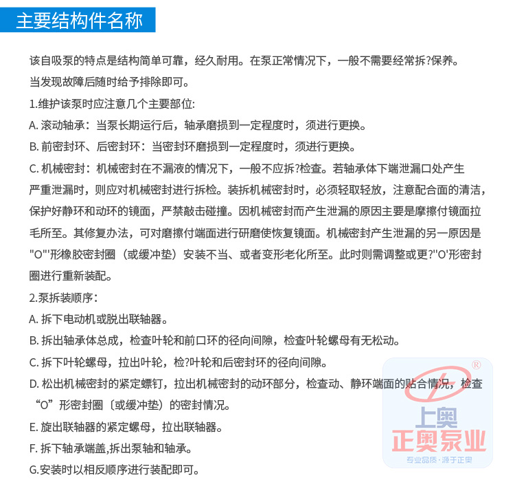 6、結構獨特、自吸性能好,工作前只需保證泵體內儲有定量引液即可。