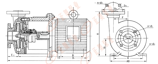 泵的旋轉方向,自吸入口向電機方向看為順時針方向旋轉,泵出口垂直向上。