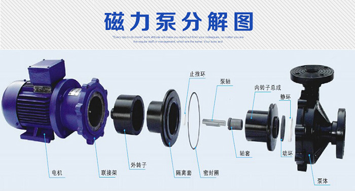 磁力泵以靜密封取代動(dòng)密封,使泵的過流部件處于完全密封狀態(tài),底徹解決了其他泵機(jī)械密封無法避免的跑、冒、滴之弊病。磁力泵選用耐腐蝕、高強(qiáng)度的工程塑料、鋼玉陶瓷、不銹鋼等作為制造材料,因此它具有良好的抗腐蝕性能,并可以使被輸送介質(zhì)免受污染。