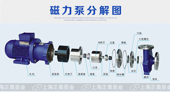 該泵的設(shè)計具有可靠性高、使用壽命長、通用化程度高的特點(diǎn),磁力驅(qū)動泵又稱無軸封泵,它以靜密封取代動密封,使泵的過流部件完全處于密封狀態(tài),因采用磁力聯(lián)軸器傳動,所以能代替原機(jī)械泵機(jī)械密封一直解決不了的跑、冒、滴、漏之弊病。