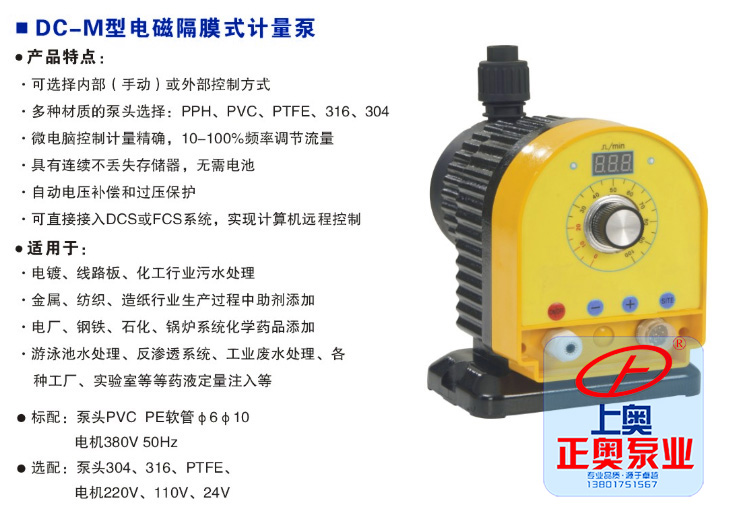 一、DC-M型電磁隔膜式計量泵產品特點: