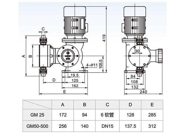 3、接觸介質泵頭為PVC、可選PTFE、及不銹鋼材質。