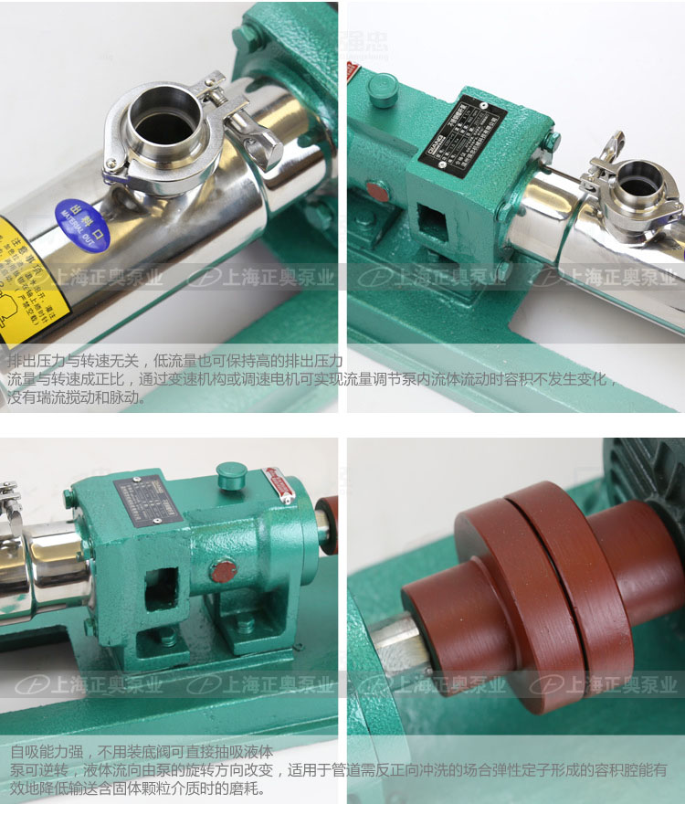 因定子選用多種彈性材料制成,所以這種泵對高粘度流體的輸送和含有硬質懸浮顆粒介質或含有纖維介質的輸送,有一般泵種所不能勝任的特點。其流量與轉速成正比。