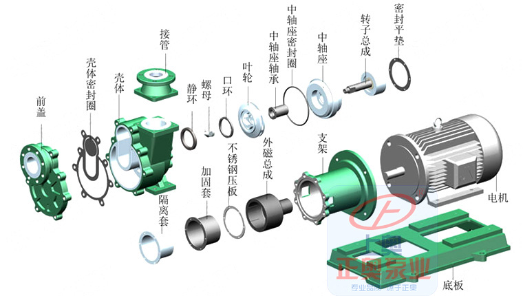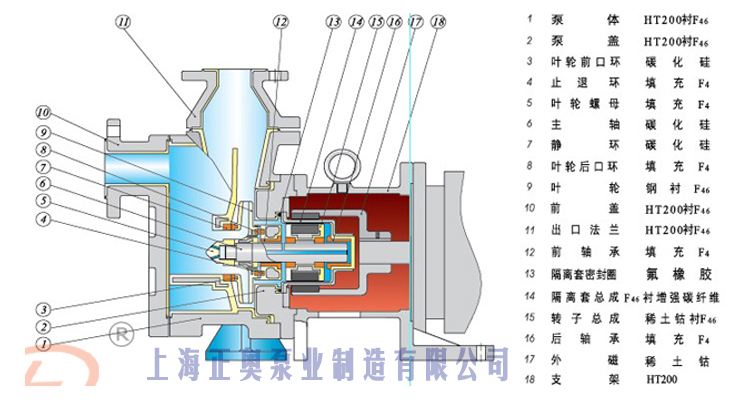 ZMD氟塑料自吸式磁力泵為公司推出新一代耐腐蝕自吸磁力泵,它不但集氟塑料磁力泵的優(yōu)點于一身,而且大的功能是可以自吸、無泄漏,這是以往的所有氟塑料磁力泵不能達到的,因此,該系列泵一推出就受到了廣大用戶的歡迎。該系列泵可廣泛適用于化工、有色金屬冶煉、農(nóng)藥、制酸制堿、造紙、酸洗工藝、稀土分離、電鍍、電子、化成箔、卸酸堿等行業(yè)或工作流程,是目前磁力泵品種中結(jié)構(gòu)新穎的產(chǎn)品之一。 該泵的適用溫度:-20°C-100°C。ZMD氟塑料磁力泵采用電機直聯(lián)式結(jié)構(gòu),由中間支架支撐,結(jié)構(gòu)緊湊,拆卸維護方便,采用高性能磁性材料“釹鐵硼”制造內(nèi)外磁體,隔離套采用進口非金屬材料,可輸送高濃度,密度大于1.84t/m3的強腐蝕介質(zhì);主要部件采用鋼襯F46,泵體強度高,能耐所有強酸,強堿的腐蝕; 產(chǎn)品充分結(jié)合了磁力泵與自吸泵的優(yōu)點,是在IMD磁力泵的基礎上延伸開發(fā)出來的產(chǎn)品,突出的特點是既具有自吸泵的自吸功能又有磁力泵的無泄漏、運轉(zhuǎn)寧靜的優(yōu)點,是液下泵好的替代產(chǎn)品。特別適合于輸送易燃、易爆、有毒、有揮發(fā)性及貴重介質(zhì)。現(xiàn)已批量投放市場,在很多項目上替代了進口磁力泵。ZMD氟塑料磁力泵廣泛適用于石油化工、有色金屬冶煉農(nóng)藥、制酸制堿、造紙、酸洗工藝、稀土分離、電鍍、電子,化成箔等行業(yè)吸取輸送低于泵安裝位置以下的腐蝕性液體,是目前磁力泵品種中結(jié)構(gòu)新穎的產(chǎn)品。